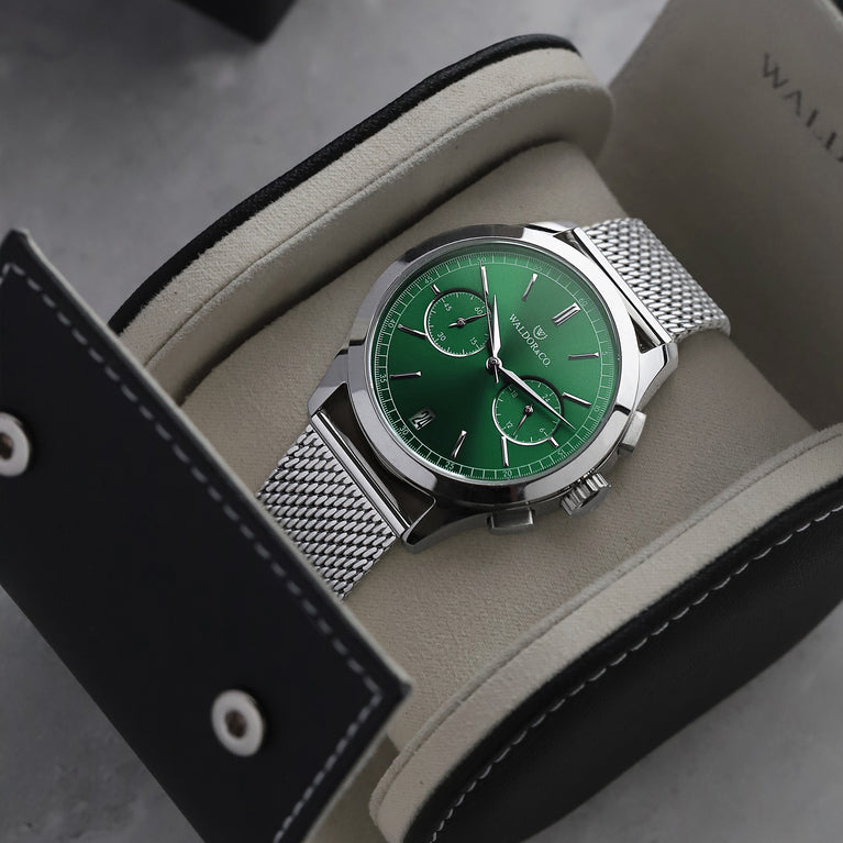 Dial: Green sunray dial in brass