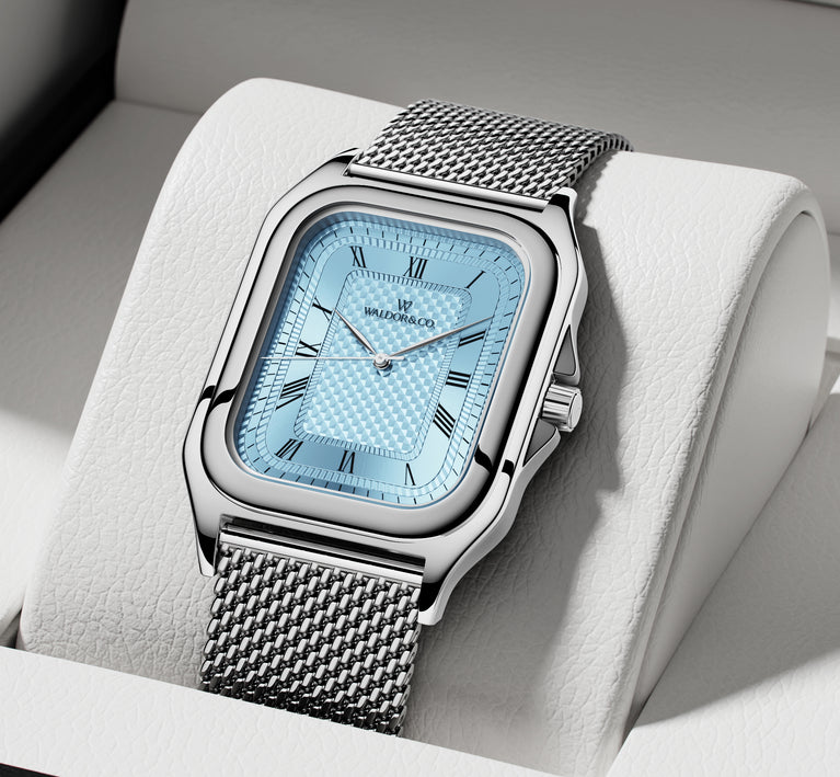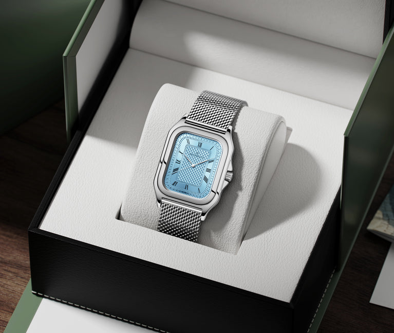 Strap: Mesh strap in rhodium-plated 316L stainless steel